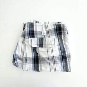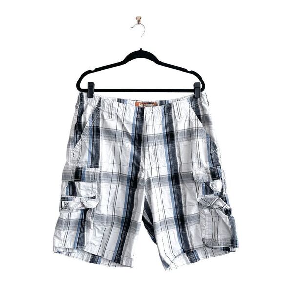LEE Dungarees Mens Cargo Plaid Casual Flat Front Shorts Blue White Size 36