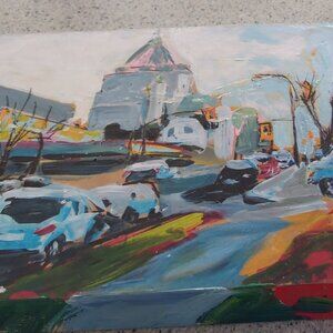 LEEF EVANS Original Art Acrylic on Cradle Board Gore Powell Vancouver City Scene