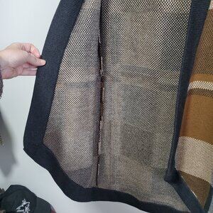Color: brown/gold, white and dark grey, in a plaid pattern