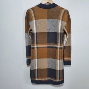 LEFT ON HOUSTON Plaid Wool Blend Long Cardigan Open Front Academia Womens Medium