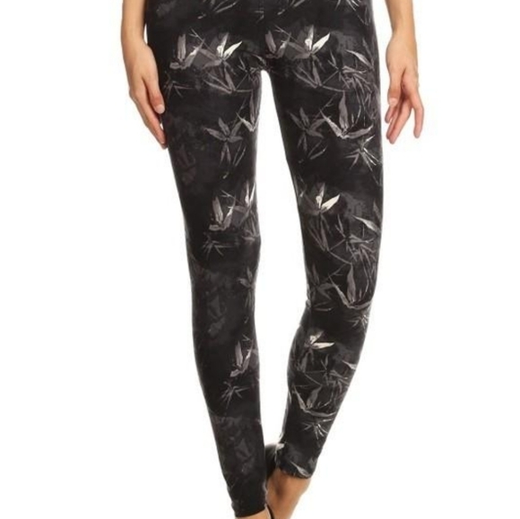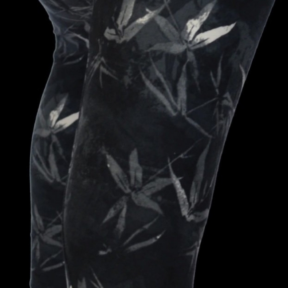LEGGINGS DEPOT Black & Gray Bamboo Floral Print Full length Leggings Size 10 NWT