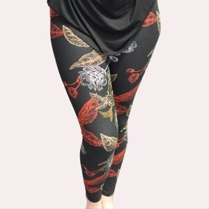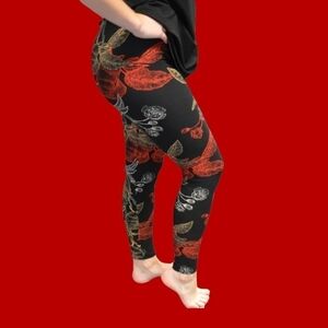 LEGGINGS DEPOT Black & Red Floral Print Full length Size 12-20 NWT
