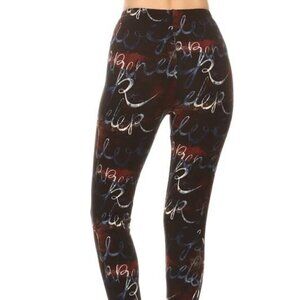 LEGGINGS DEPOT Brown & Cream Abstract Print Full length Leggings Size 12 NWT