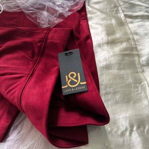 LEGGINGS, FAUX SUEDE, RED, SIZE 26, LOVE & LEGEND, ADDITION ELLE, POLYESTER BLEND, ELASTIC WAIST, TAGS ON, NEW NEVER WORN