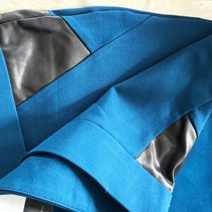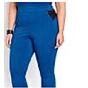 LEGGINGS, PLEATHER ACCENTS, SCARABE BLUE, SZ 26, MICHEL STUDIO ADDITION ELLE, VISCOSE NYLON, FAUX LEATHER ACCENTS, ELASTIC WAIST, TAGS ON, NEW NEVER WORN