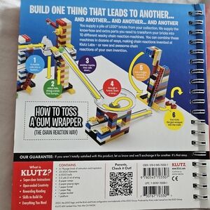 3) Klutz LEGO Chain Reactions Book inspires creation of Rube Goldberg elements. This book does NOT include the LEGO elements. The 33 elements that you would need is shown in the listing. 6 out 7 pages of punch out paper elements are intact. Great for a classroom that already has a large collection of LEGO elements.