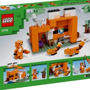 Bring Minecraft adventures to life with this LEGO 21178 "The Fox Lodge" set! Includes 193 pieces to build a cozy fox-shaped house, plus 3 fox figures (including a baby fox and snowy fox), a zombie, and a character in a fox skin. The set also features fun interior details like a bed, cake, map, and more!