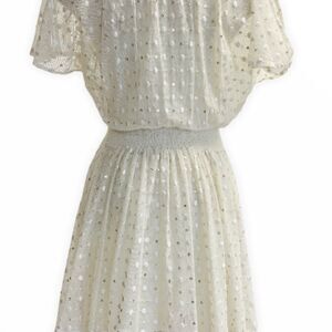 Leifnotes Net Dot & Gleam Sequin mesh asymmetrical short sleeve Dress size 4