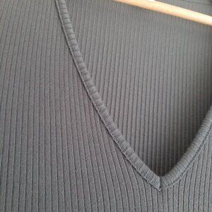 LEITH | Ribbed Fitted V-Neck Short Sleeve T-Shirt Gray Tee Sz S