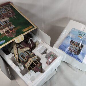 PLEASE READ! There is various wear to this piece. The boat, buoys, wave, and light next to door have been reattached. The mail box is missing. The light is working and rotates (like in a lighthouse), although the motor is a little loud. Comes with the original box and packaging as well as the electric adapter cord. Please see pictures.