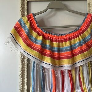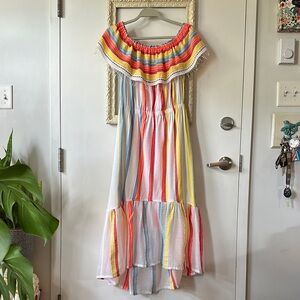 LEMLEM | Anthropologie Beach Dress in Stripes Lemon Zest High Low Off Shoulders