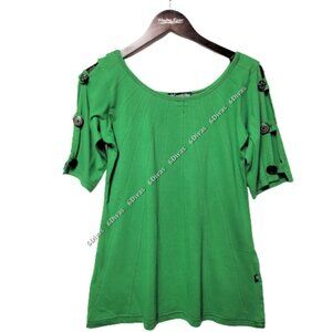 LEOPARDS And Roses Green Long Sleeved Cotton Blouse Top Size S