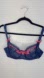 dark blue with red floral embroidery on mesh cups with red velvet bows and blue velvet trim