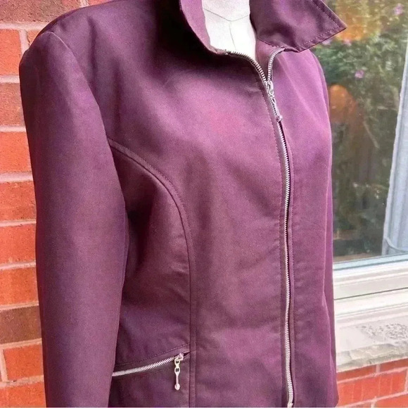 Beautiful L’EQUIPE (styled in Paris) Made in Moldova Burgundy Fall Blazer or Jacket. In good pre loved condition. Well made with nice zipper detailing. Best representation of colour is video outside.
