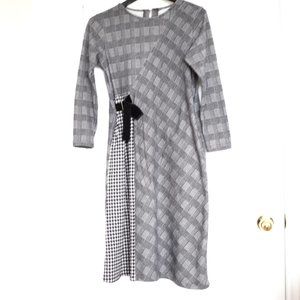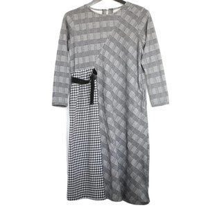 LES MUES femme patchwork glen plaid dress with adjustable waist tie size M
