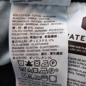 • Mid rise cropped denim pants in dark blue wash with front zip fly and classic 5-pocket styling.