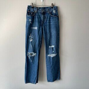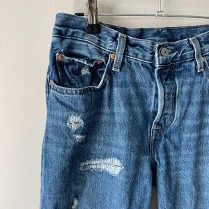 LEVI'S 501 90s Jeans Destructed Denim Straight Leg High Rise Indigo Blue 26