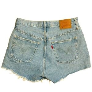 LEVIS 501 Blue Distressed Ripped Highwaisted Shorts SZ 29 Like NEW