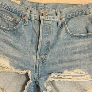 LEVIS 501 Blue Distressed Ripped Highwaisted Shorts SZ 29 Like NEW