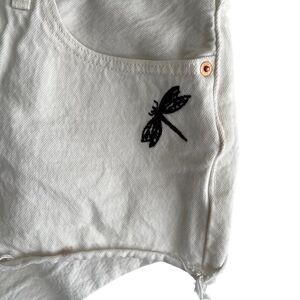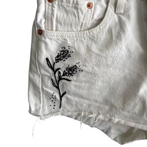 LEVI’S 501 High Waisted Cut Off Denim Jean Shorts White With Black Embroidery