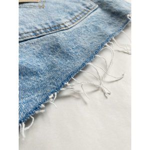 Timeless denim shorts with an unfinished hem and distressed detail. Five-pocket style with button closure and button fly.
