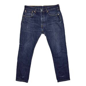 LEVI'S 501 Original Fit Distressed Button Fly Dark Blue Wash Jeans Size 32