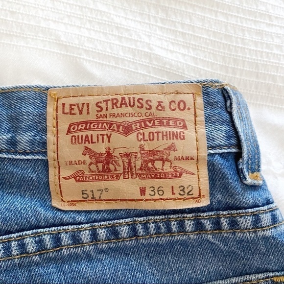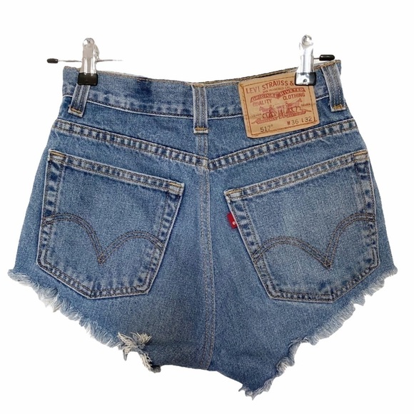 LEVI'S 517 BOOTCUT HIGH WAISTED / HIGH RISE DIY FRAYED ULTRA SHORT DENIM SHORTS , a real thick denim vintage boot cut 517 style from levis jeans horts with frayed hem - 5 pockets styling - belt loops - zipper fly with one button closure - pockets that stick out from the very short leg - V shape, perfect 80"s vibe with a very high waist / high rise cut. Casual, sexy, classic denim piece of clothing. Perfect for summer seasons with sneakers or sandals.