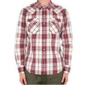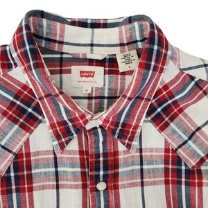 LEVI'S Barstow Western red check snap shirt M cowboy classic fit vintage vibe