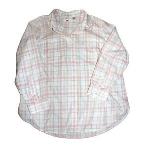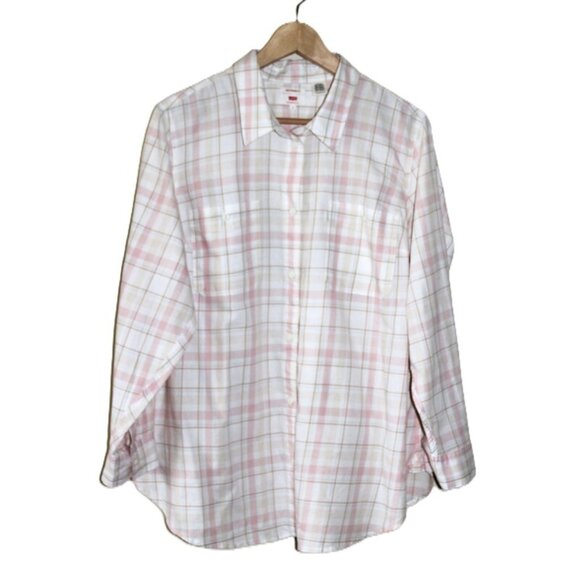 LEVI'S® Boyfriend Plaid Button-Up Shirt in Cream & Pink - Size 1X