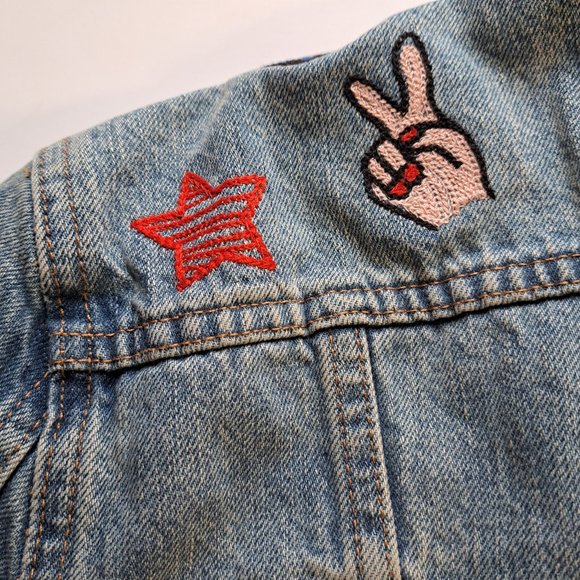 LEVI'S California Dreamin' EMBROIDERED DENIM jeans jacket Sz S NOVELTY A GEM !