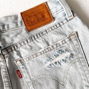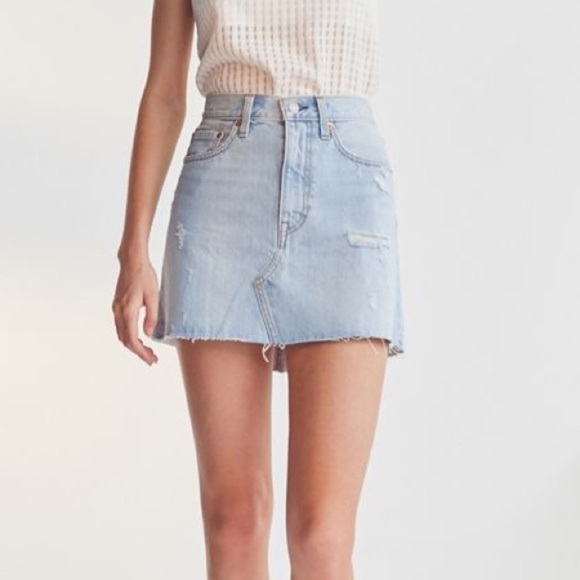 Vintage-look denim mini with a cut off hem by Levi’s. In a slim high-rise fit equipped with 5 pockets and a button-zipper fly, detailed with zig-zag front seaming and a frayed hem.