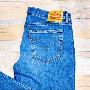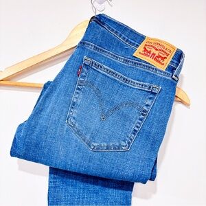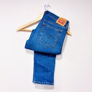 These Levi’s boyfriend jeans feature a lived-in blue wash with subtle distressing for that effortless, casual look. Designed in durable cotton denim with a relaxed fit that’s both flattering and comfortable. Perfect for pairing with sneakers or a crisp white tee.