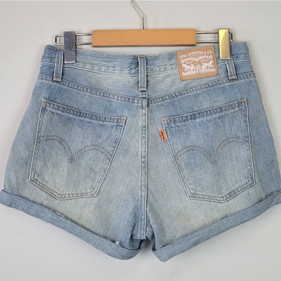 LEVI'S Jean Shorts Orange Tab Rolled Hem High Rise 26