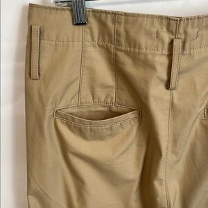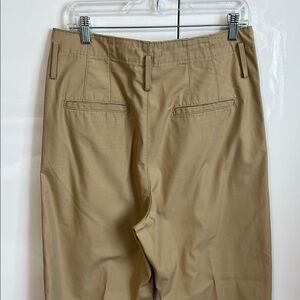 LEVI’S PREMIUM Khaki High Waist Pants Cotton Chinos Blend Tapered Pleated in size 30 offer a timeless appeal with their classic pleated front design and tapered cut leg. Crafted from smooth cotton twill, these trousers provide a polished look suitable for various occasions. Their versatile tan color makes them a staple piece for any wardrobe. The belt is missing from the pants. Excellent condition like new worn once.