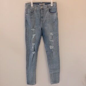 LEVI’S PREMIUM women’s Mile High super Skinny distressed jeans zipper & button fly five pockets, light wash,size 28
