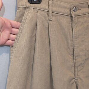 LEVIS Premium Wide Leg Pleated Crop Corduroy Pants Khaki High Waist Size 25