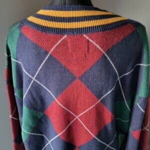 LEVI'S Preppy Argyle RETRO 90's Stay Loose Oversized V-Neck Sweater Sz Large