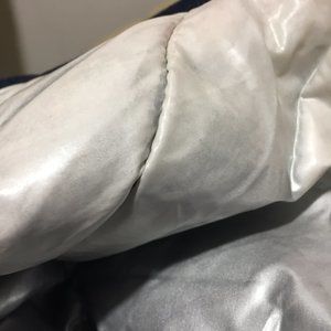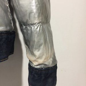 Levi's Reversible Denim Jacket. Size M, Color Blue Wash, and Silver, Outershell 100% Cotton, Lining 100% Polyamide, Filling 80% Goose Down, 20% Feather, Breast Pockets, Side Pockets, Inside Pockets, Closure Snap Buttons, Silver Coating Faded but in Good Condition, It is a Beautiful Jacket, Great Look, Great Fitting.