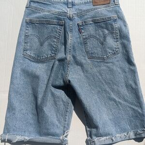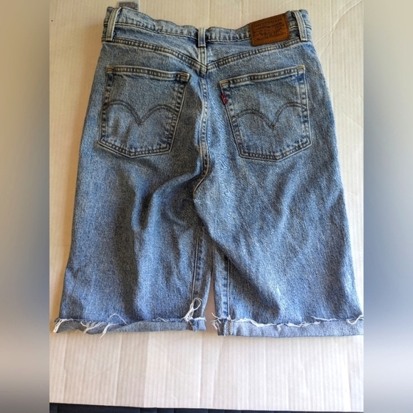 Levi's Ribcage Shorts Bermuda Mid thigh Style Rolled Raw Hem Button Fly