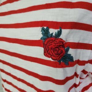 LEVI'S Red White Embroidered Rose Striped Top T-shirt