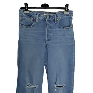 LEVI’S Ribcage Straight Ankle Distressed High Rise Button Fly Jeans Sz 30 EUC