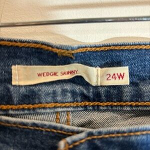 LEVI’S Sz 24W Wedgie Skinny Chewed Hem Button Fly Mid-Washer High Rise Jeans