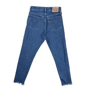 LEVI'S WEDGIE Skinny Fit High Rise Distressed hem Button Fly Mid Wash Jeans 28
