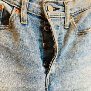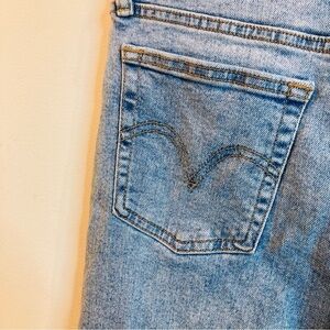 LEVI’S WEDGIE Sz 27 Wedgie Straight Distressed Light Washed Jeans. Super fun and trendy. Small stain as pictured. Price reflects that. Super high rise.