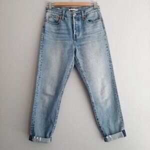 LEVI'S Wedgie High Rise Distressed Light Blue Wash Button Fly Jeans Sz 26