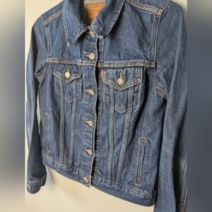 LEVI'S Women Jeans Jacket Size S Navy Blue With Pockets Button Down 100% Cotton