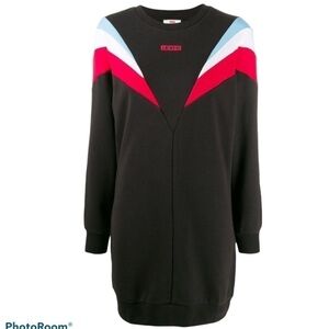 Meteorite cotton blend striped shoulder sweater dress from Levi's featuring a striped print, a ribbed crew neck, a printed logo to the front, long sleeves, a ribbed hem and cuffs and a short length.