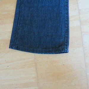 These “super low boot cut” dark wash jeans by LEVI’S are in near-new condition, without tags. They are marked on tag as size 7/23, though actual waist/hip measurement is about 32”, and I would say they fit like a size 26. They have been professionally hemmed to inseam- 28”. Made of 100% cotton. Comes from a smoke-free and pet-free home.