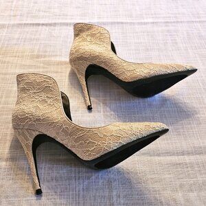 LFL Lace Cream Pointed Toe 4.5" Stiletto Heels Size 6.5