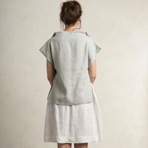 LHI Lithuanian 100% Linen Cap Sleeve Top Blouse in Dove Gray Size XS